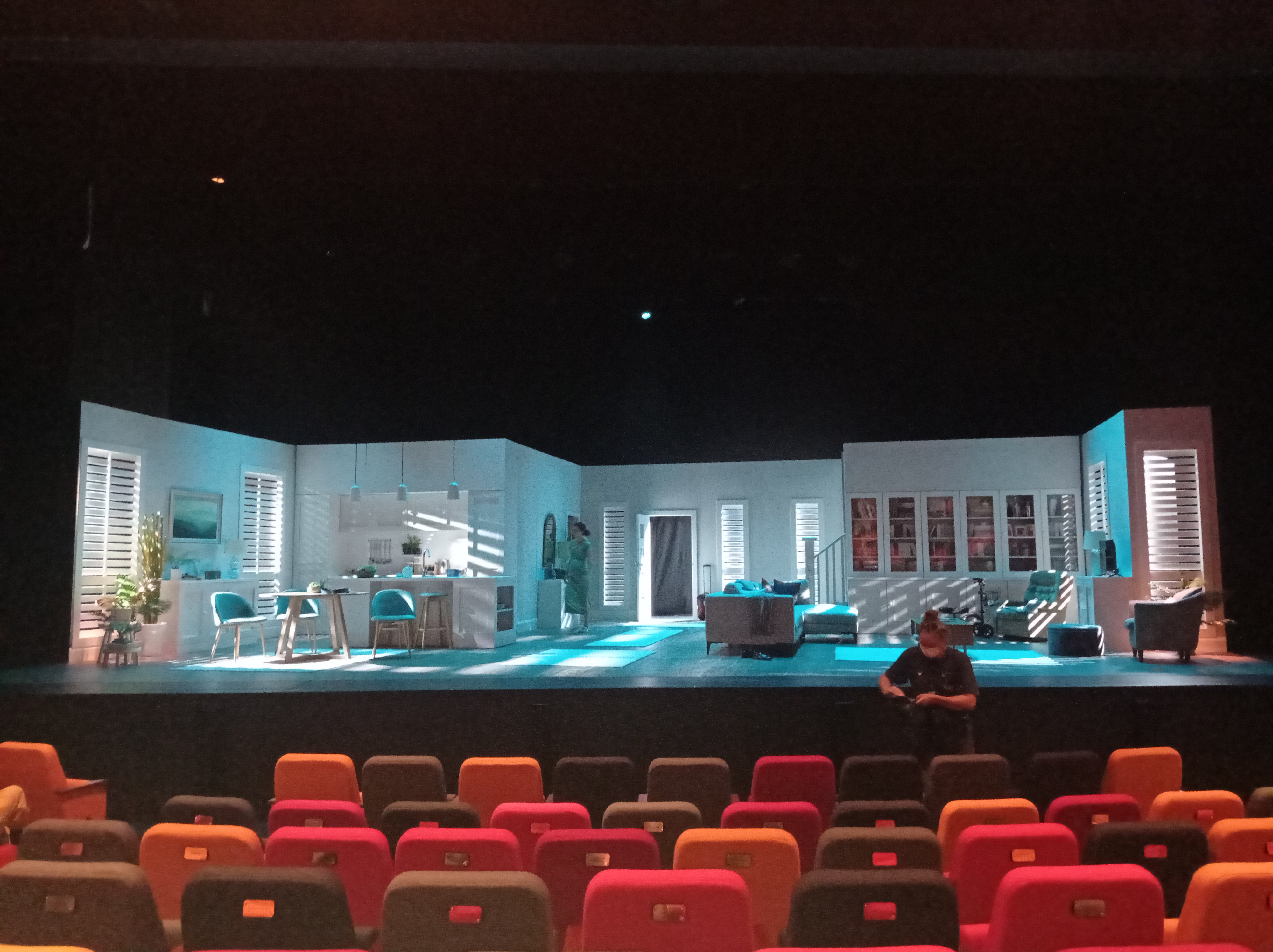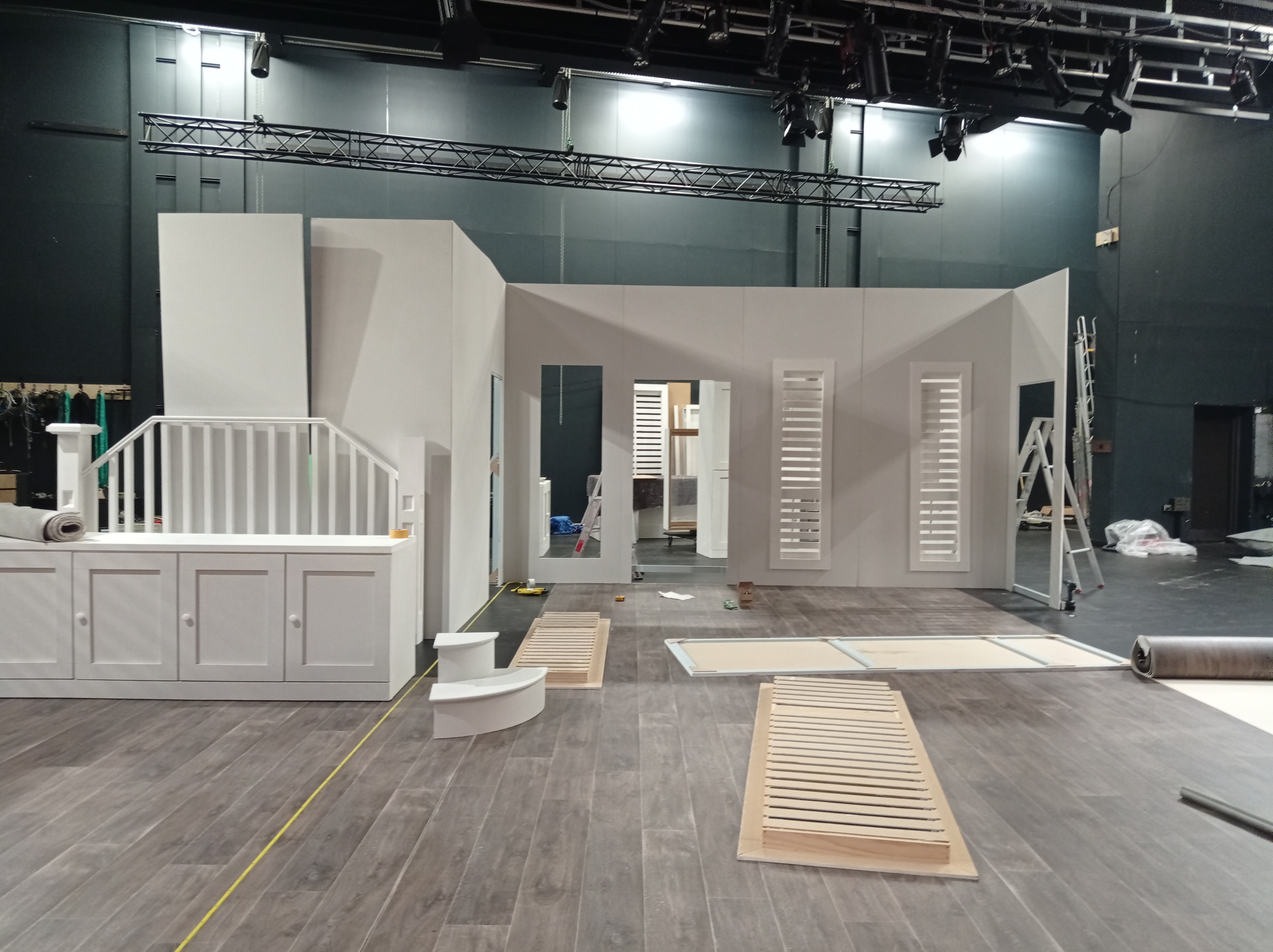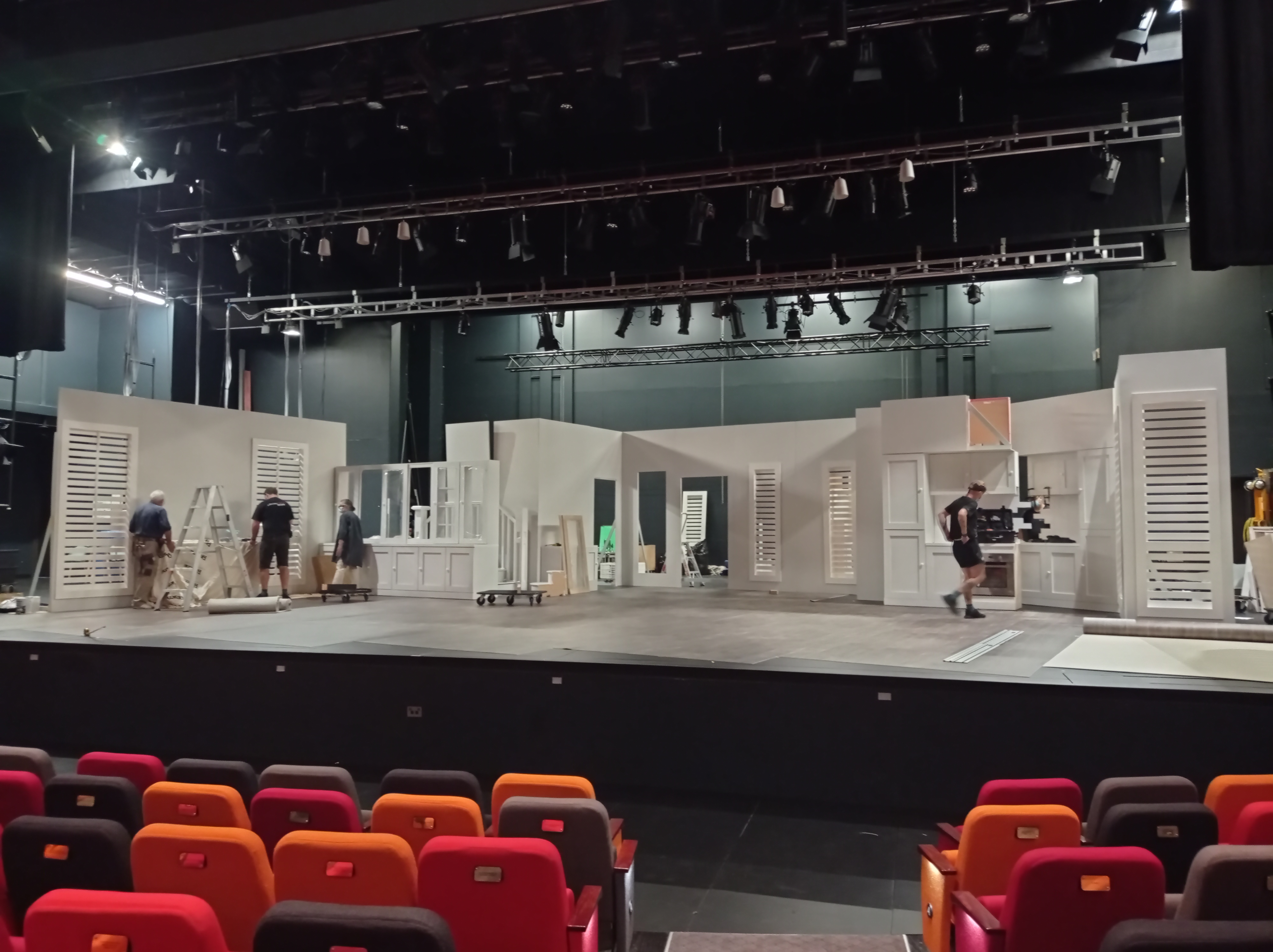 After the past couple years of little to no live theatre, we were so happy to be back in the Waterfront Theatre, setting up the Feb 2022 season of Grand Horizons, which we’d spent two months slaving away building!