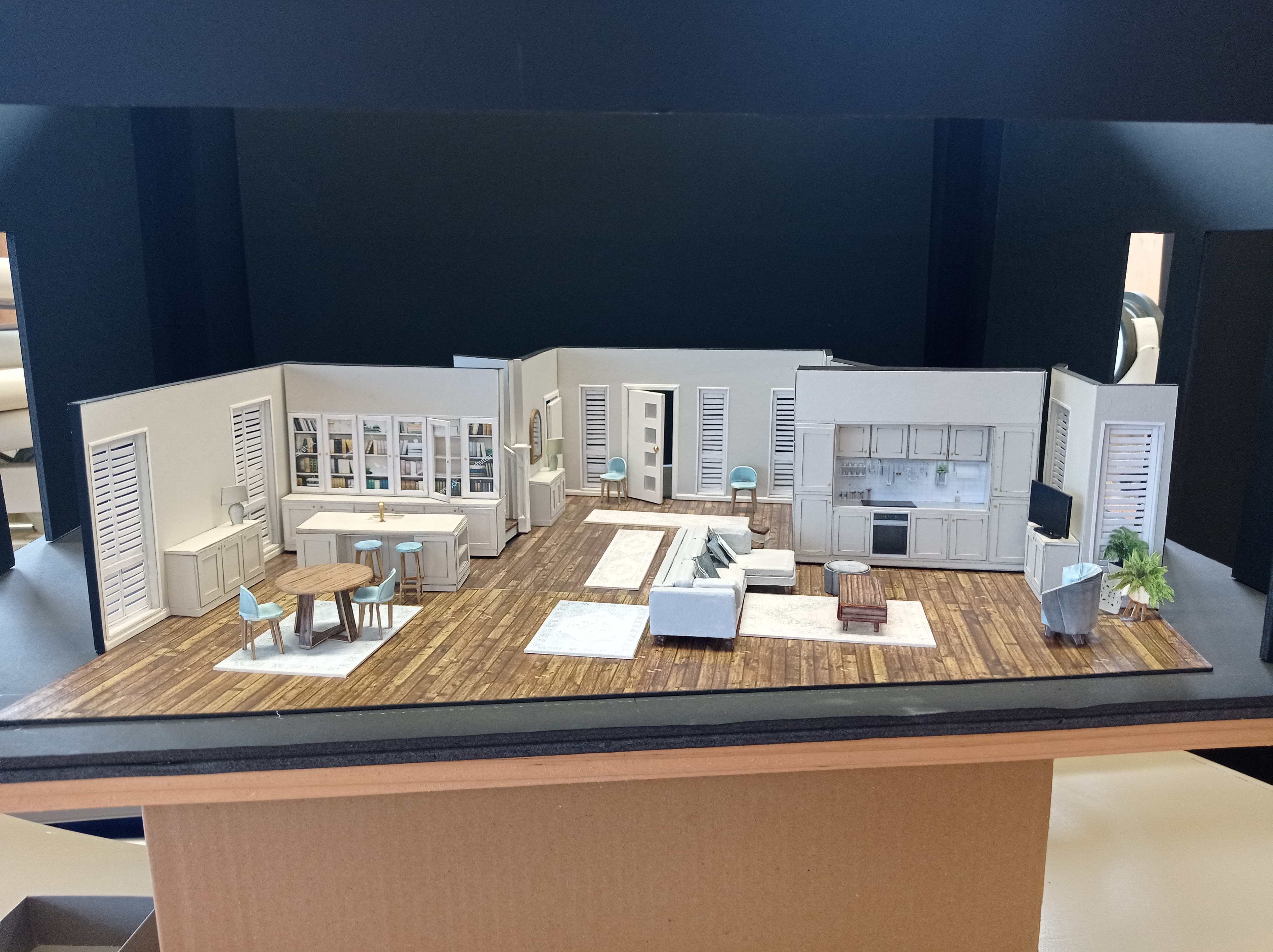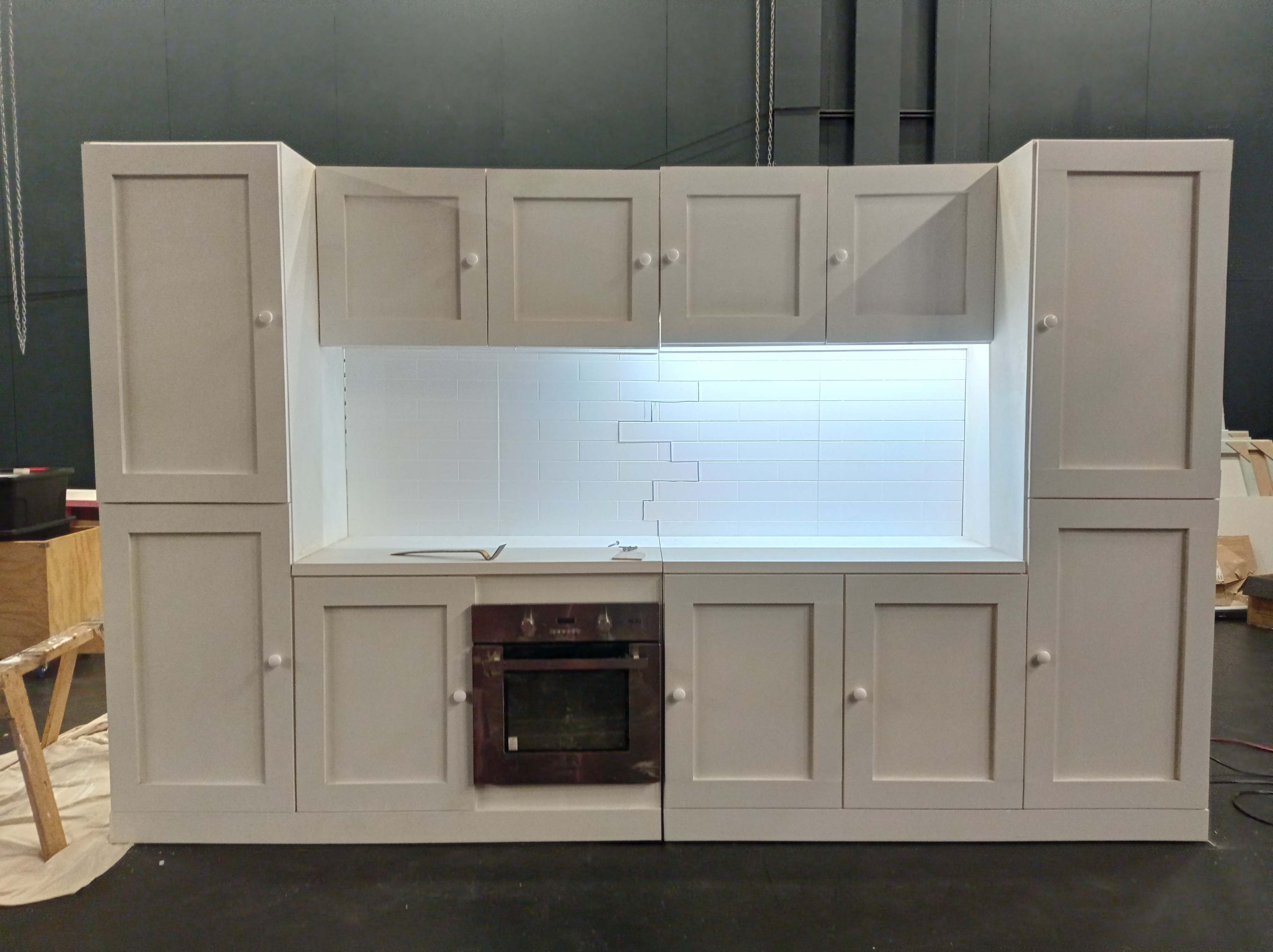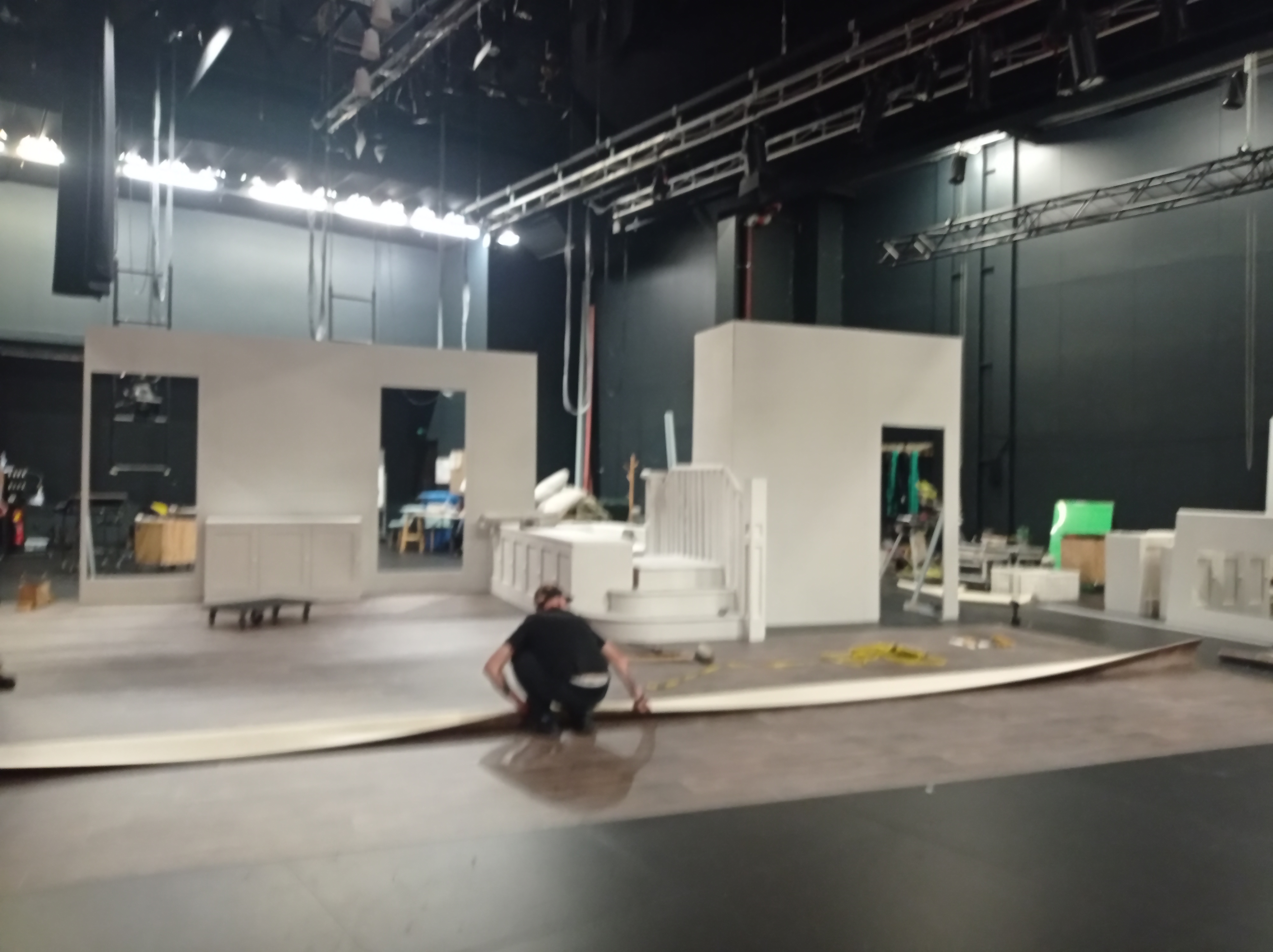 After the past couple years of little to no live theatre, we were so happy to be back in the Waterfront Theatre, setting up the Feb 2022 season of Grand Horizons, which we’d spent two months slaving away building!